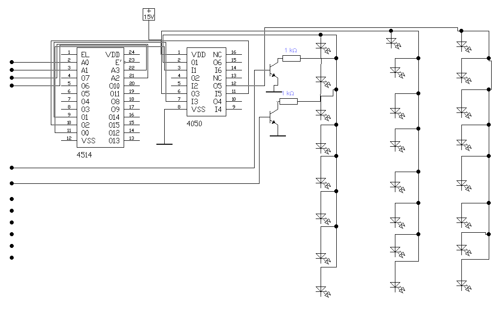 Notre premier travail fut de verifier le cablage de l'afficheur puis de regarder si toute les LED marchaient puis de comprendre leurs utilisations.Pour cela il a fallut determiner le role des pattes des amplificateur ainsi que celui du decodeur.