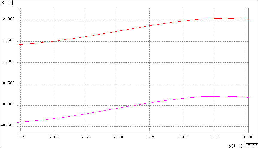 __ Angle de braquage de la roue gauche en fonction de l'angle de la biellette.