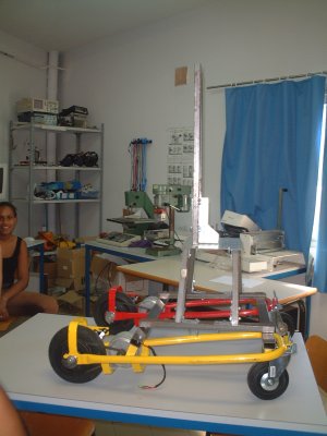 Romain à la modélisation SolidWorks : Ruddy n'étant pas là nous avons eu du mal à avancer. Pour pouvoir adapter la plaque principale de l'embase, nous avons du la repercer, ainsi que les pilliers principaux... Réalisation du site pour des soucis de design, nous avons décidés de couper les bouts d'équerre dépassant. L'embase principale est enfin finie !!