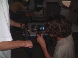 Mise en place de l'épaule: suite a des problèmes de perçage, nous avons dut repercer les base des l'épaules pour pouvoir les fixer :