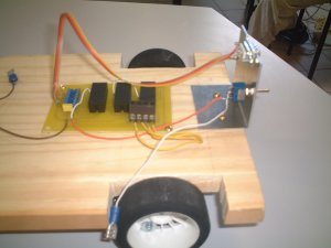 Il faut ensuite souder les différents composants sur la plaque électronique qui servira de liaison avec le port Com1 de l'ordinateur. On percera le châssis, puis l'on fixera tout d'abord la roue folle (roue de devant). On fixera ensuite les cerveaux moteur où ont été préalablement fixées les roues motrices. |