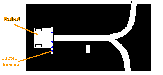 les capteurs excentrés passeront sur la ligne blanche de droite: celle ci ne