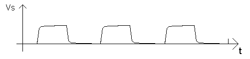 Le filtre "passe bas " laisse passer les basses fréquences (inférieur à Fc) et atténue fortement les fréquences > Fc . Le signal Vs1 obtenu est alors :