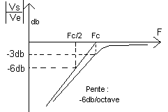 Pente d'un filtre du premier ordre : -6db/octave : signifie que pour passer de