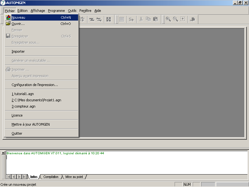 Commençons par créer un nouveau projet sous Automgen en cliquant sur Nouveau dans le menu Fichier :