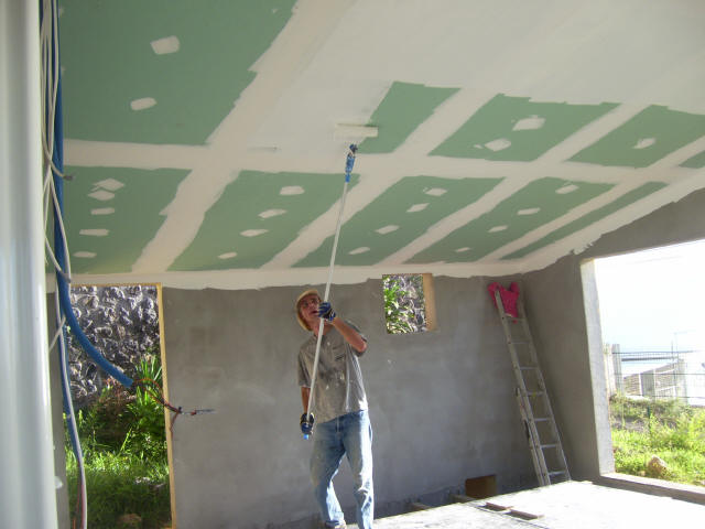 Et là, une fois le scotch enlevé. La peinture du plafond, c'est assez physique.