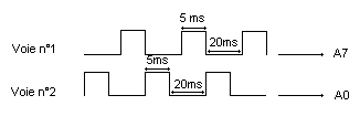 Voilà ce que l'on obtient sur l'oscilloscope pour les deux voies du récepteur HF: