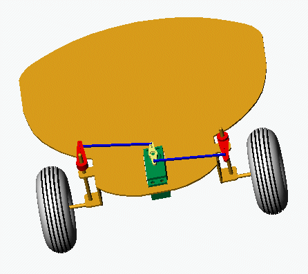 Pour les centres I et F la modélisation en 2D du A-robot dans le référentiel choisi ne nous permet pas de définir complètement les liaisons du "bras de commande" entre la "tige" et "l'axe arrière". |