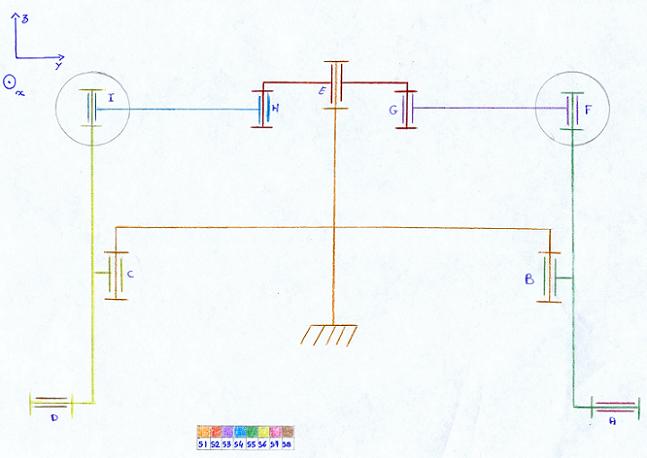 Graphe de liaisonPour une étude de liaison de la partie directionnelle du A-Robot, nous avons énumérés les sous-ensembles de cette partie en nous aidant du système réel de la nomenclature. Nous avons par la suite établis le graphe des liaisons avec MotionWorks.