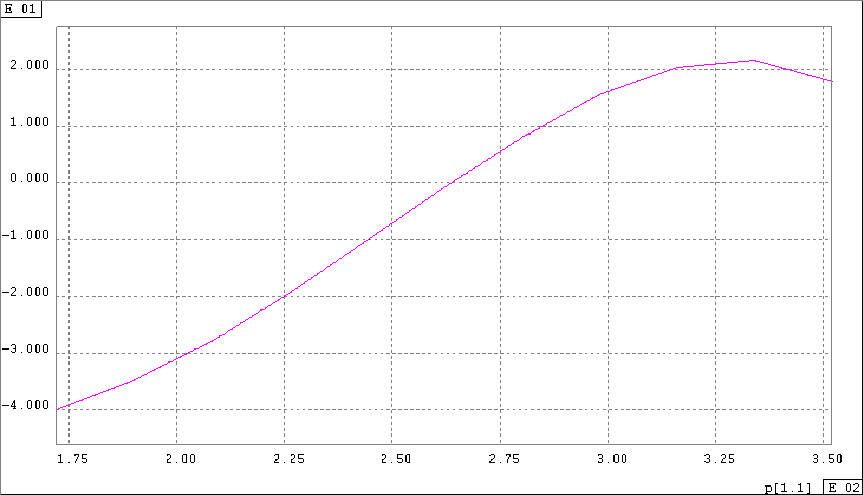 Angle de braquage de la roue droite en fonction de la biellette.
