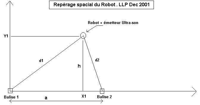 la position du robot (X,Y), connaissant la distance entre deux balises.