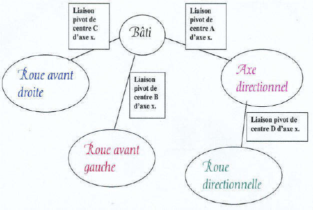 Graphe des liaisons : Un graphe des liaisons est un graphe représentant les différents degrés de liberté (mouvement possible ) entre chaque ensemble cinématique. Sur notre base ,il n'y a que des liaisons pivots qui permet une seule rotation par rapport à un axe.