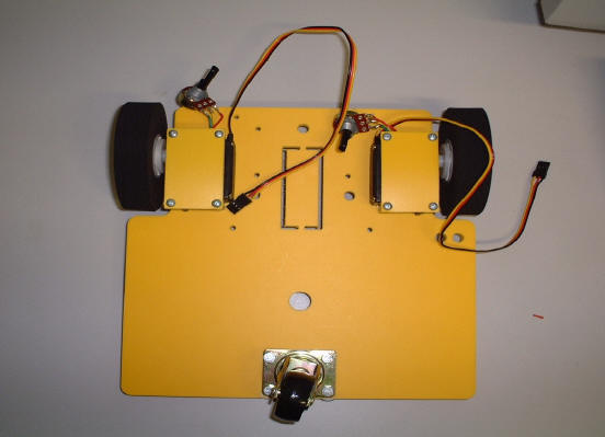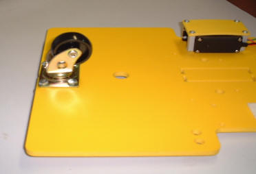 fixée sur le chassis et le servo moteur fixé par quatre entretoises sur