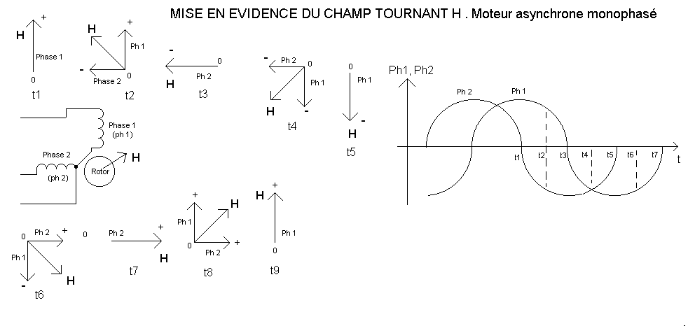 Explication du fonctionnement du moteur asynchrone monophasé +