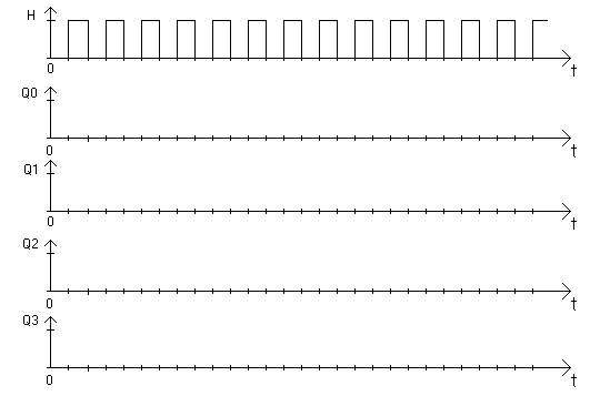 Tracer les chronogrammes de Q0, Q1, Q2, Q3 (compteur binaire 4