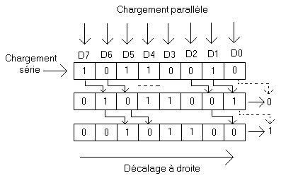 registre à décalage 8 bits. Donner la valeur du registre pour :